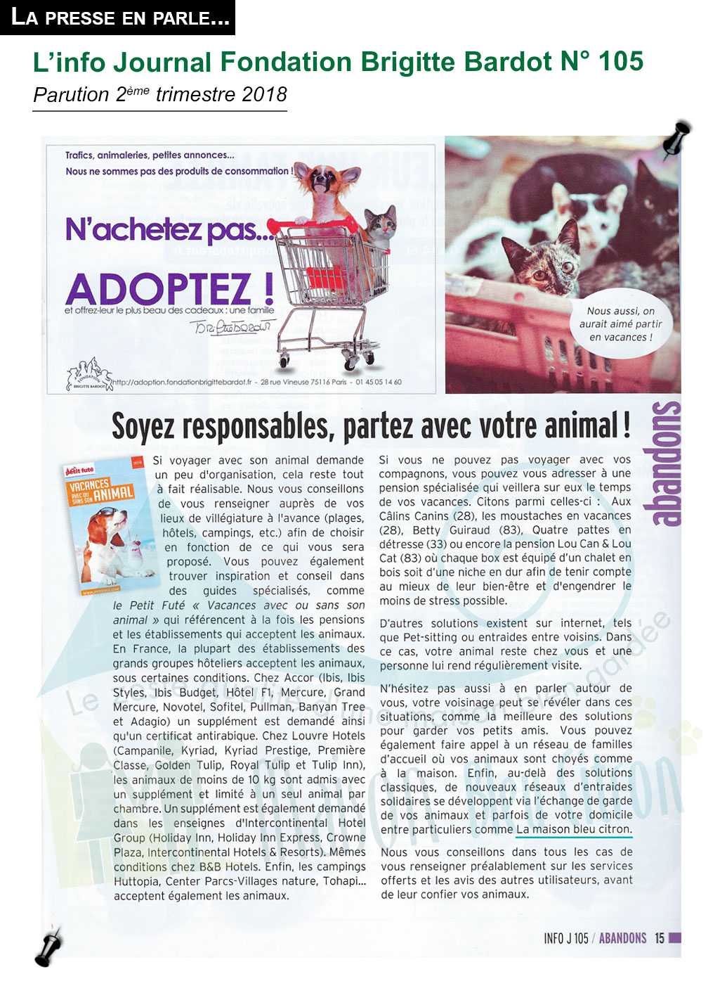 L'Info journal fondation BRIGITTE BARDOT - Janvier 2019